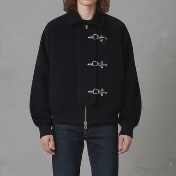 Unique Black Wool Toggle Bomber Jacket – Edgy Streetwear Jacket for Men