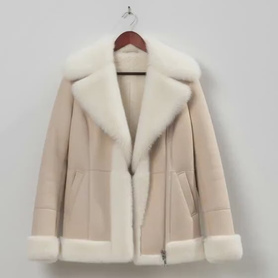 Women's Beige Sheepskin Shearling Jacket – Warm Winter Coat