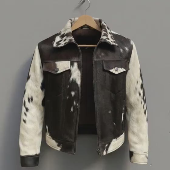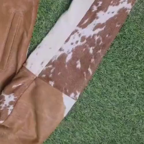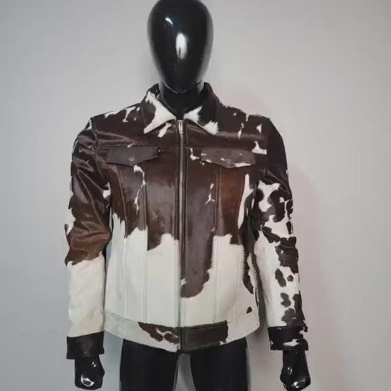 Genuine Cowhide Leather Jacket, Hair on Hide Coat, Western Cowboy Rodeo Style