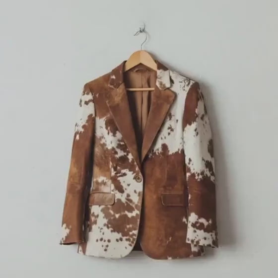 Handmade Brown White Cowhide Jacket for Men Hair On Hide Western Blazer