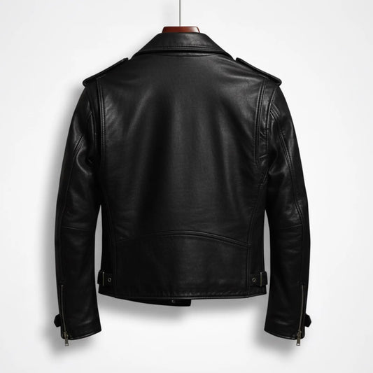 Handmade Black Leather Jacket – Men's Classic Biker Motorcycle Style