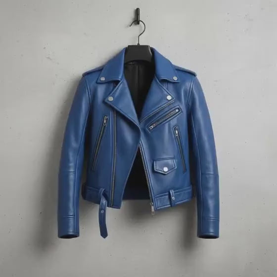 Handmade Blue Leather Jacket – Men's Biker Jacket, Motorcycle Gift for Him