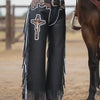 Custom Leather Bull Riding Chaps with Cross, Handmade Western Rodeo Cowboy Gear