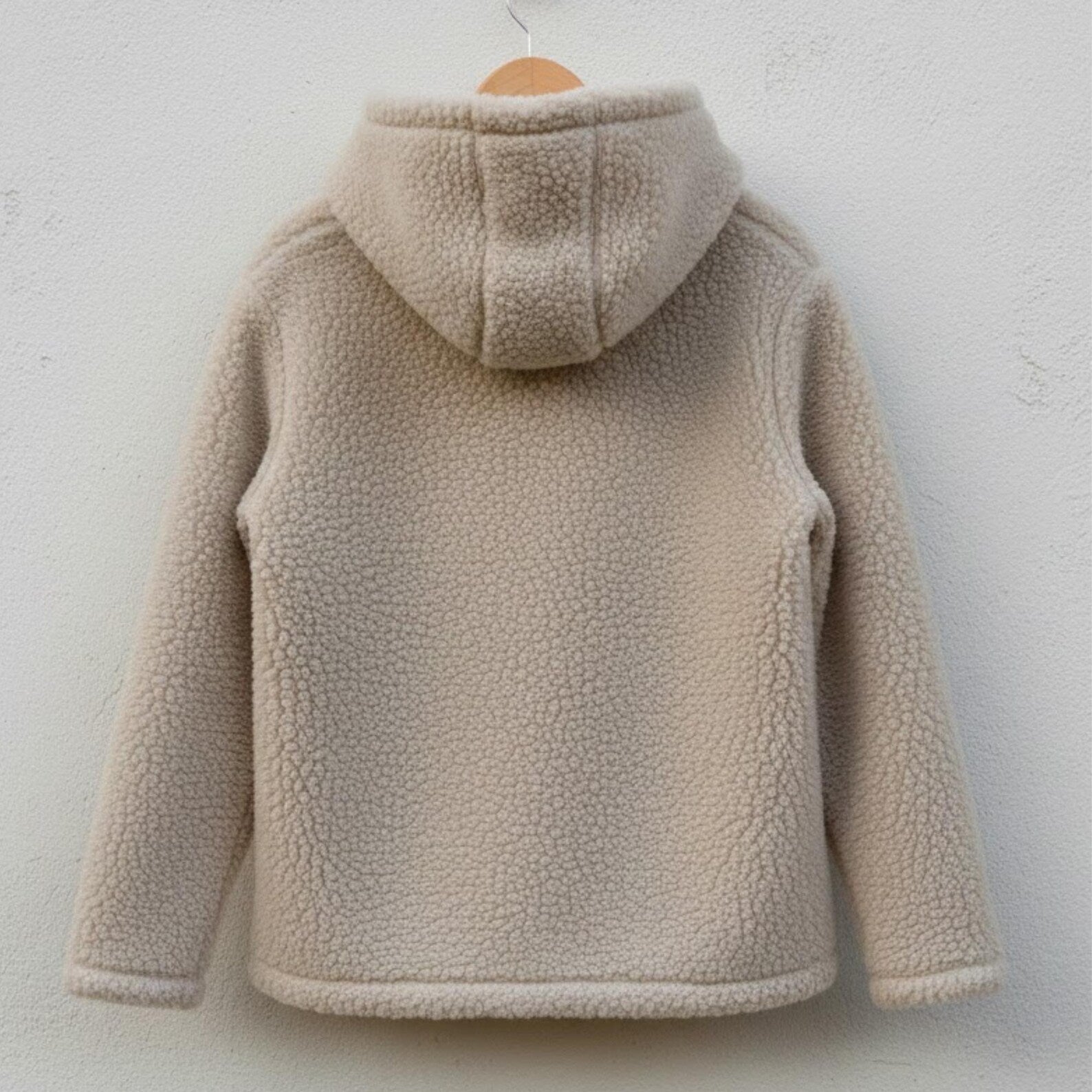 Handmade Beige Sherpa Jacket, Teddy Fleece Hoodie – Cozy Winter Outerwear