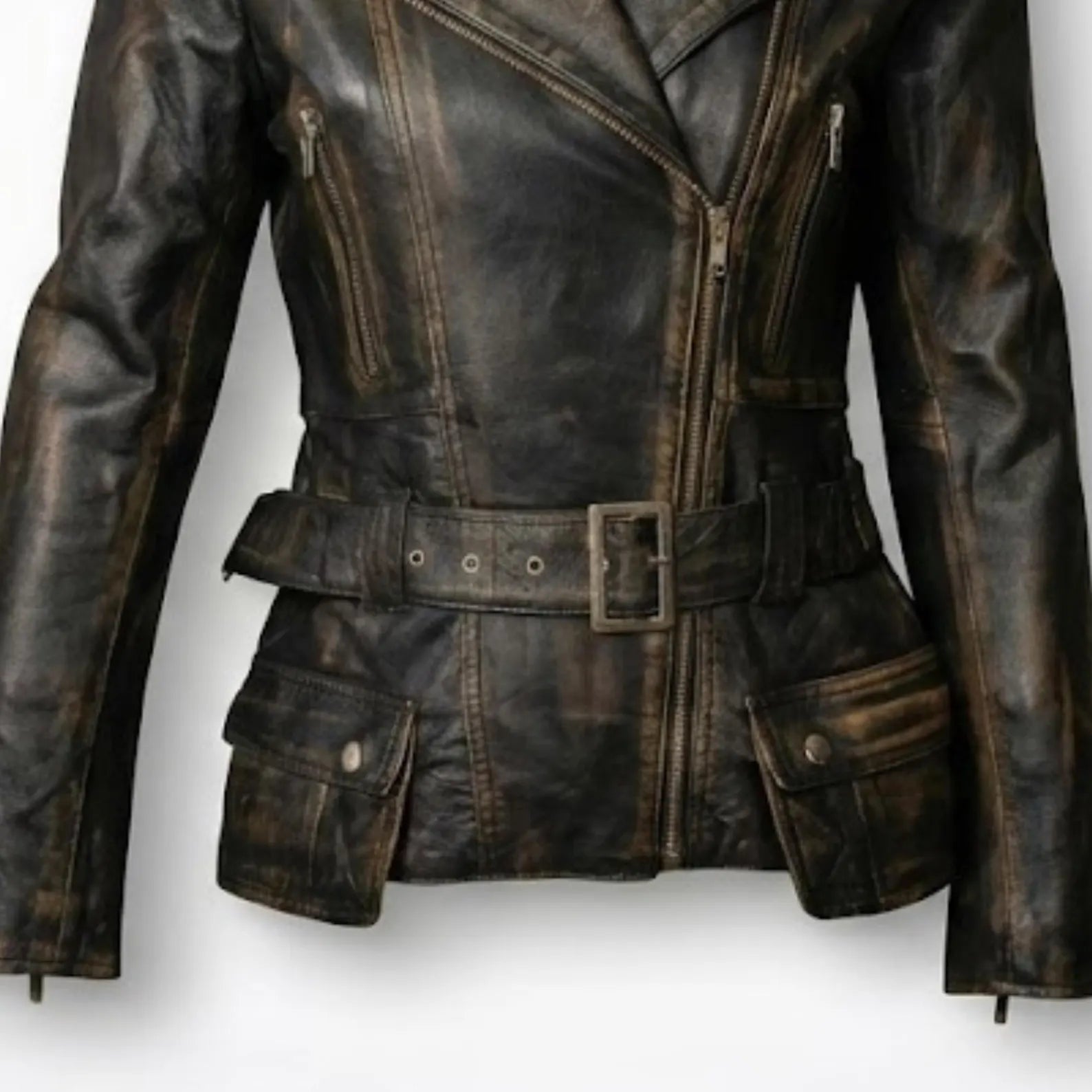 Handmade Black Distressed Leather Jacket – Women's Biker Style Coat