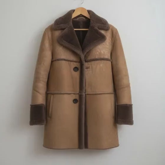 Handmade Brown Shearling Leather Coat for Women Fur Lined Winter Jacket for new year