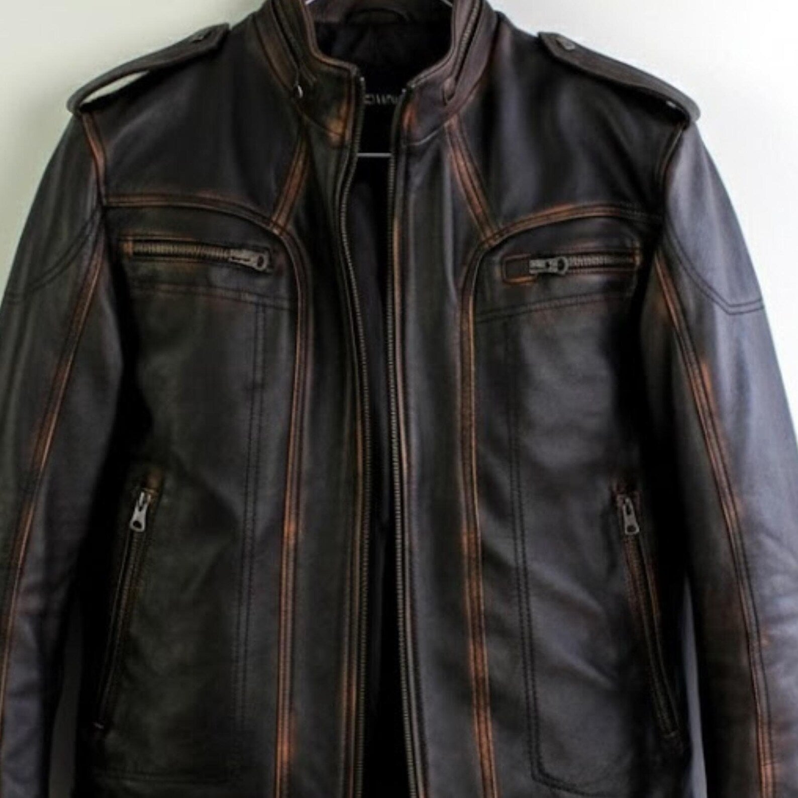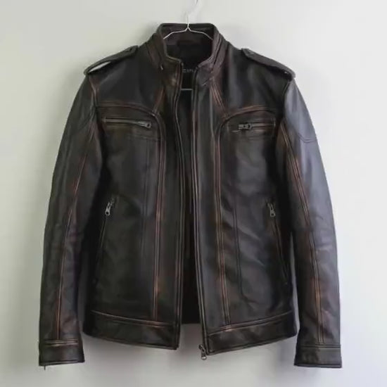 Men’s Distressed Brown Biker Coat Handmade Motorcycle Vintage Outerwear