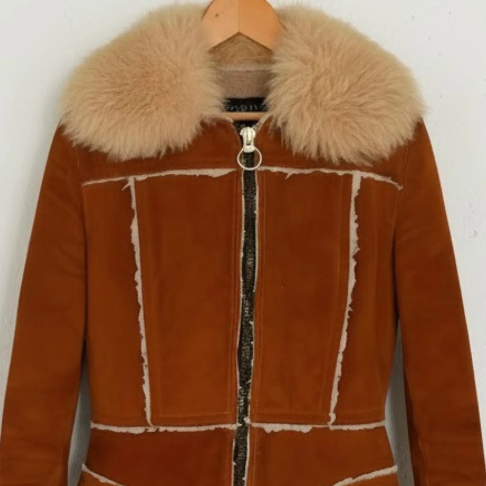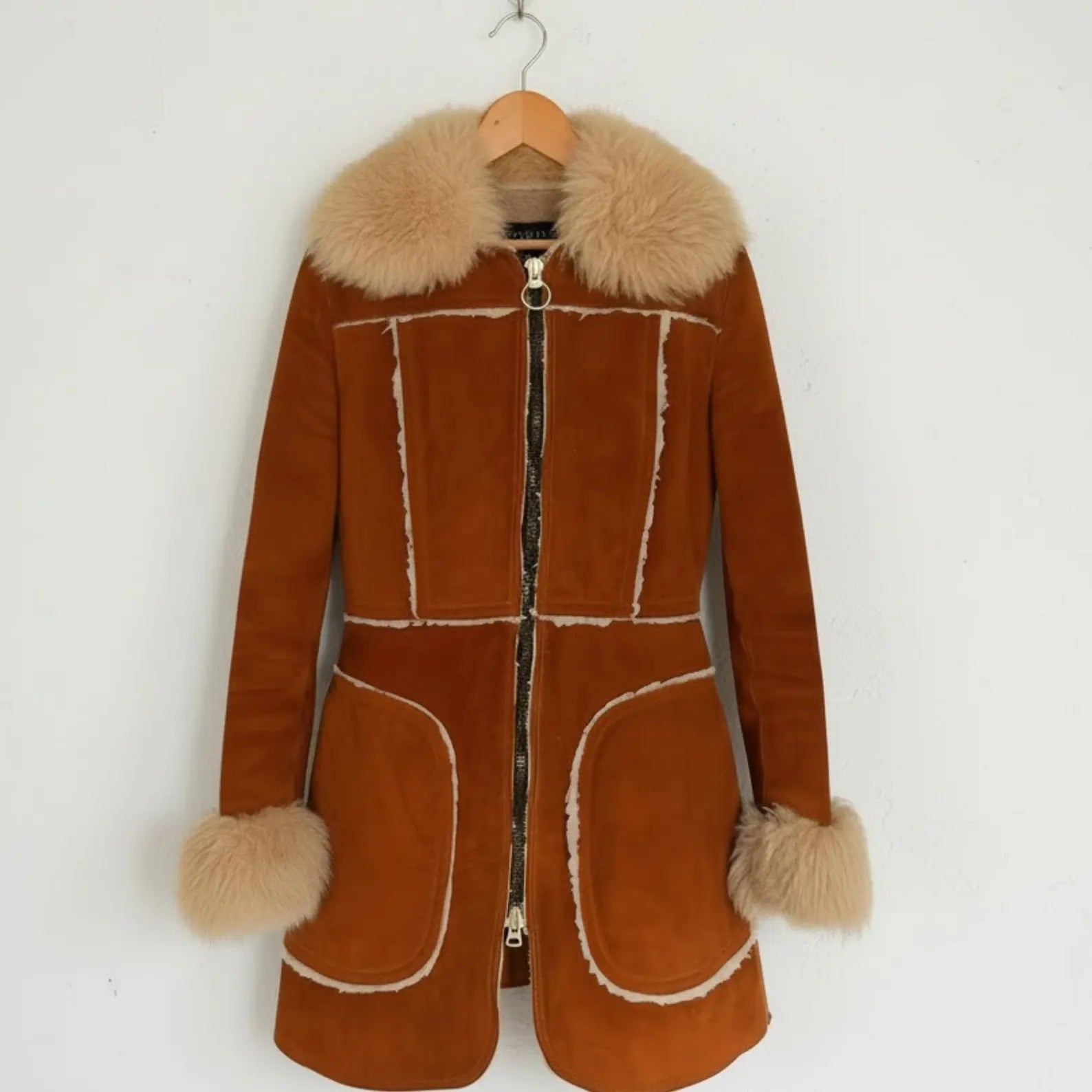 Imagine stepping out on a crisp winter day, wrapped in pure luxury. This beautiful brown shearling coat is more than just outerwear; it's a feeling of warmth and elegance. Every detail, from the soft sheepskin suede to the plush fox fur collar, is crafted to make you feel special.